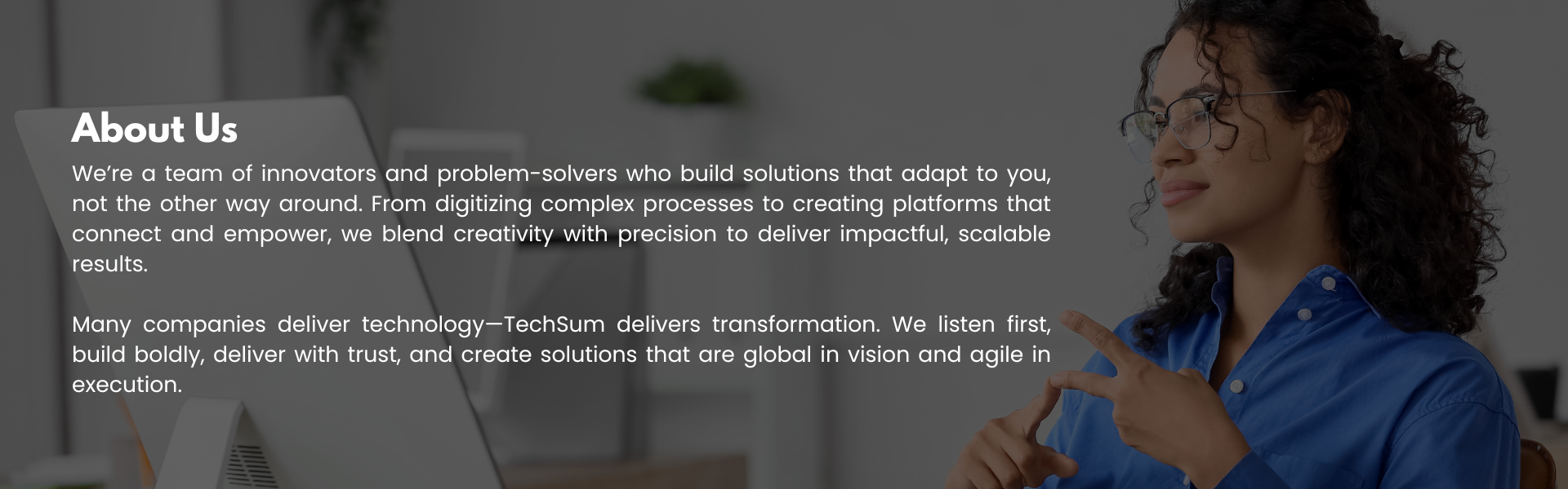 Our MissionTo deliver intelligent, customized solutions that solve real challenges, enhance efficiency, and create lasting value. We combine technology, creativity, and collaboration to help organizations achieve meaningful and measurable success.